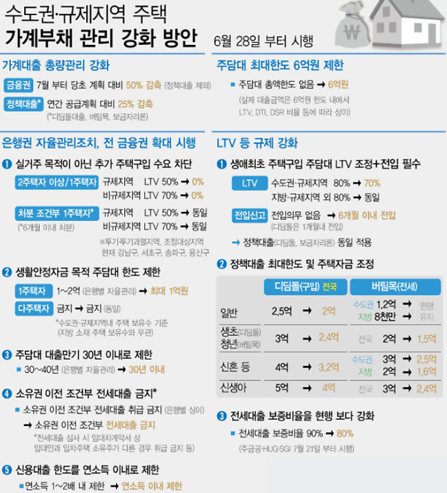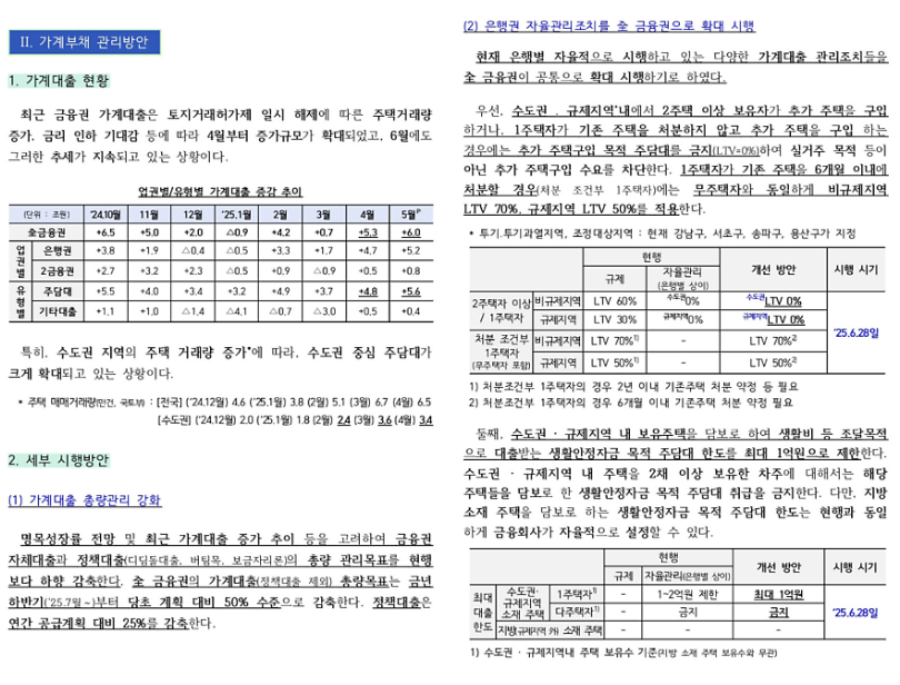 2025년 6월 28일부터 시행하는 수도권 주택 가계부채 관리 강화 방안 주요 내용에 대하여 정리해 드립니다